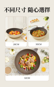 尺寸: 28cm炒鍋/鍋深8.0cm/重量1.02kg/適用人數3-4人